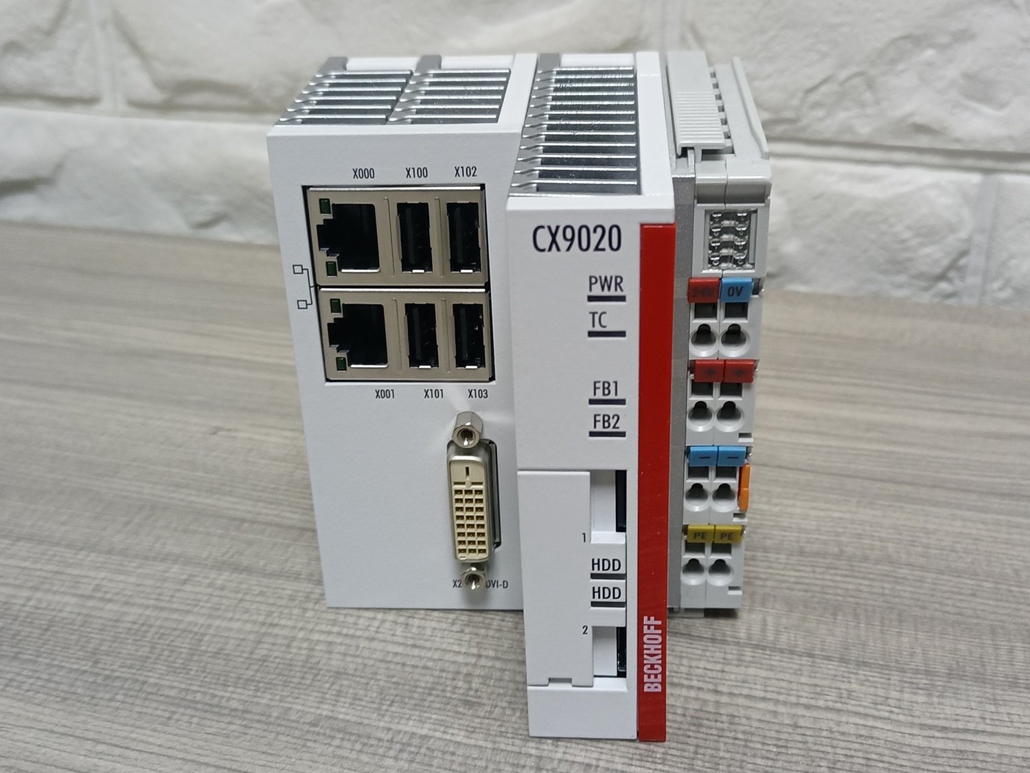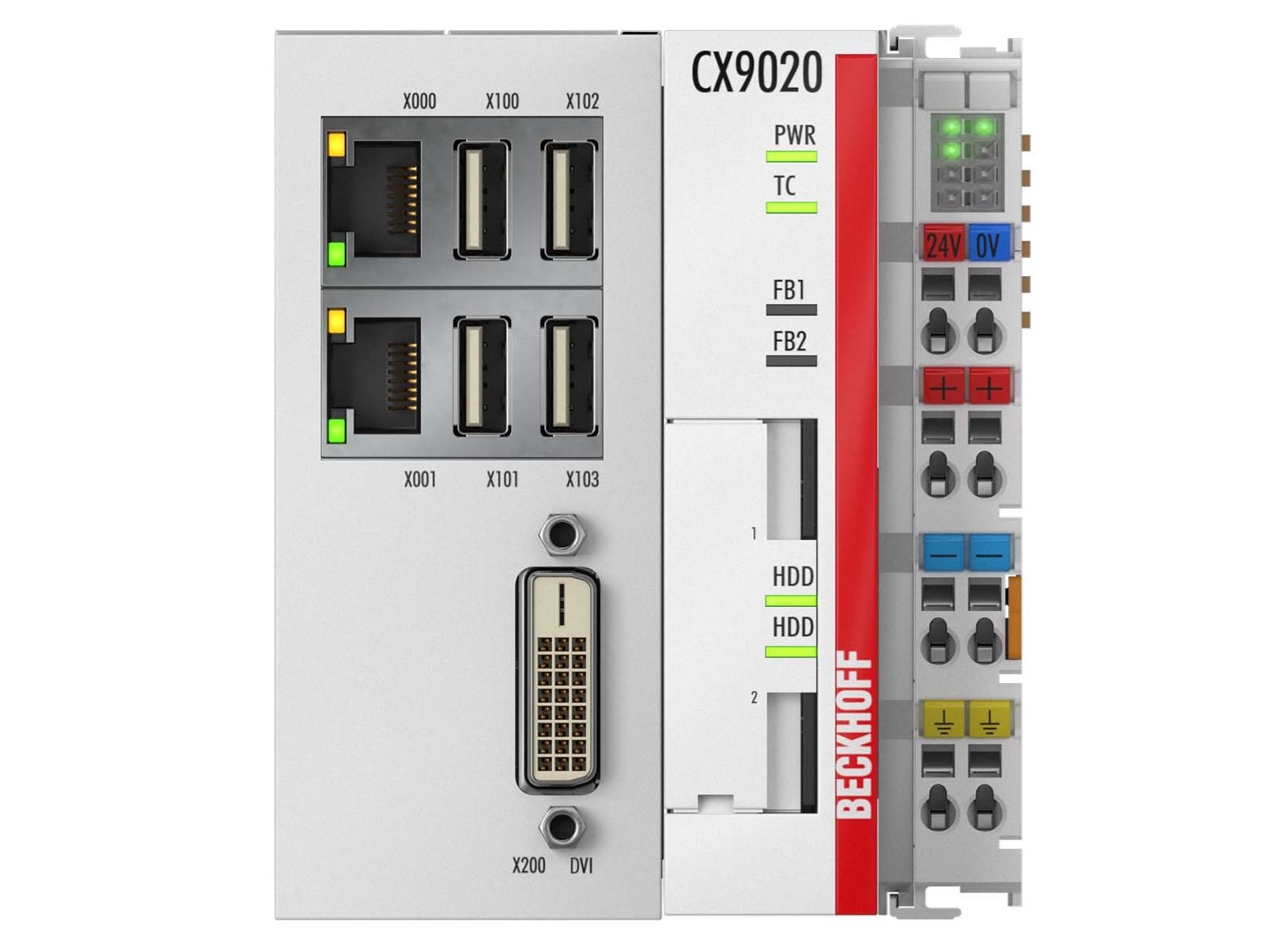 The operating system is Windows Embedded Compact 7. TwinCAT automation software transforms a CX9020 system into a powerful PLC and motion control system that can be operated with or without visualization. Optionally, the unit can be ordered with a fieldbus, serial or audio interface.
