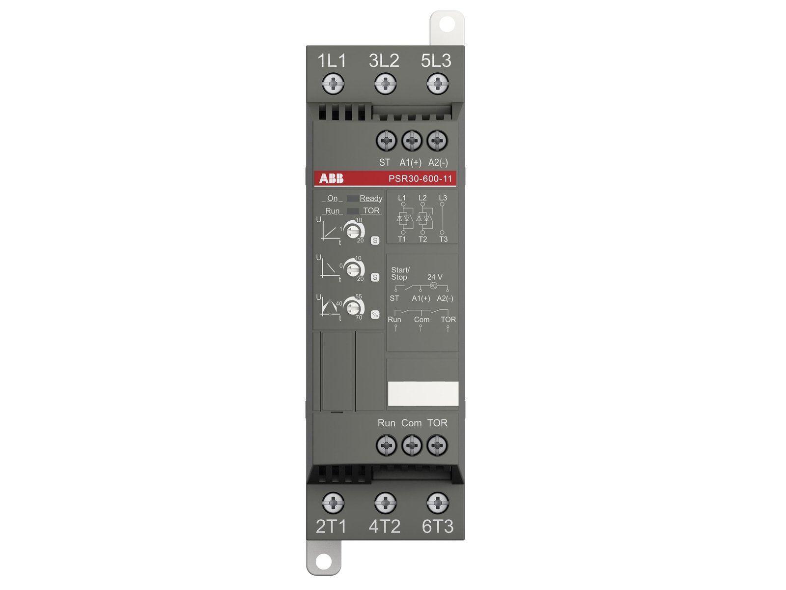 The start/stop ramp and time is easy to set by three potentiometers on the front. PSR is often used in combination with a manual motor starter (MMS) from ABB, so mechanical connection kits are available. Another popular option is Fieldbus communication, which can be enabled by an external adaptor and a Fieldbus plug.